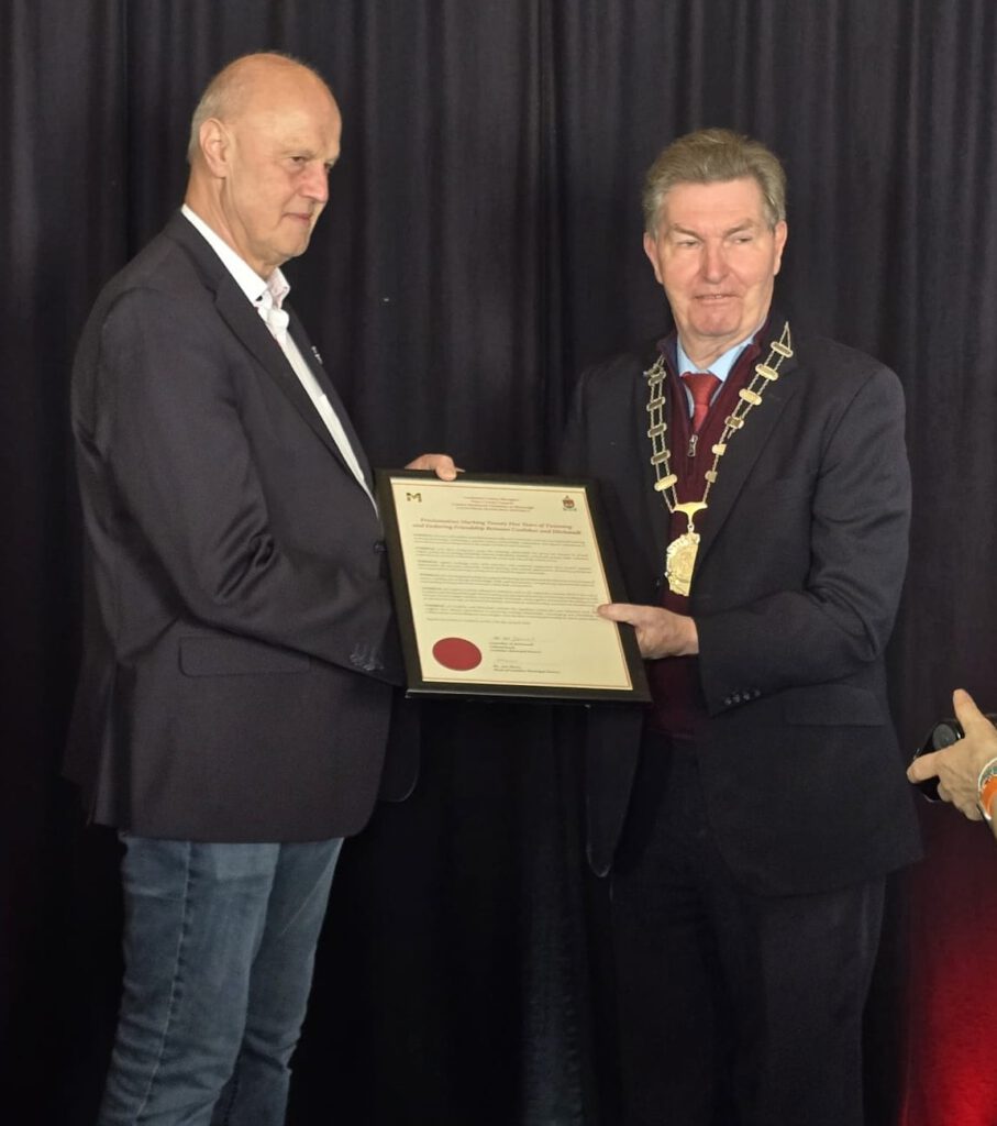 Während in Irland die Stadträte sich jährlich abwechseln mit dem Bürgermeisteramt und der sogenannte Cathaoirleach nur repräsentative Aufgaben inne hat, war Gerald Brehm für die Castlebarer seit Beginn der Städtepartnerschaft der “mayor forever”. Aus Anlass nach nun 30 Jahren Amtszeit und 25 Jahren Städtepartnerschaft gab es für den scheidenden Höchstadter Bürgermeister und seine Delegation am 17.04.2026 einen offiziellen Empfang in der Partnerstadt.