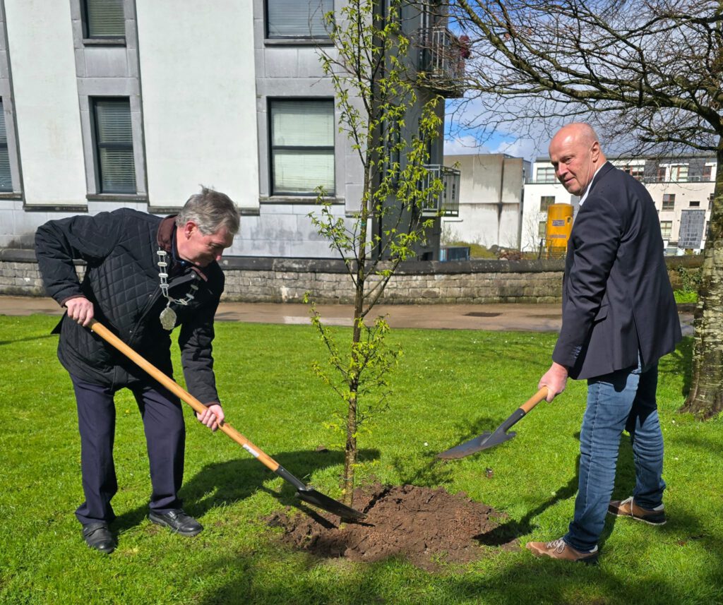 Mit Blick auf die Zukunft der engen Partnerschaft zwischen Höchstadt und Castlebar pflanzten beide Bürgermeister bei strahlendem Sonnenschein eine Esche.